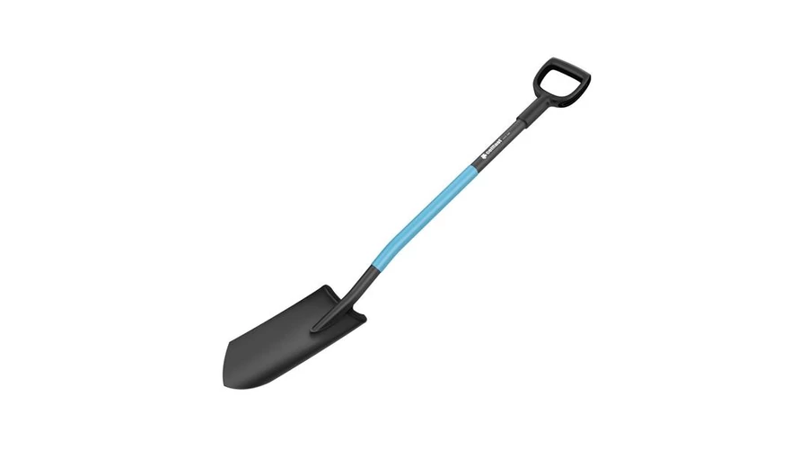 edzett, élezett feje rugalmas bóracélból, masszív és tartós üvegszálas kompozit fogantyúval és tartós ovális markolattal rendelkezik az ásófej beépített, tartós fémállvánnyal van felszerelve a láb számára, amely biztosítja a tartást
