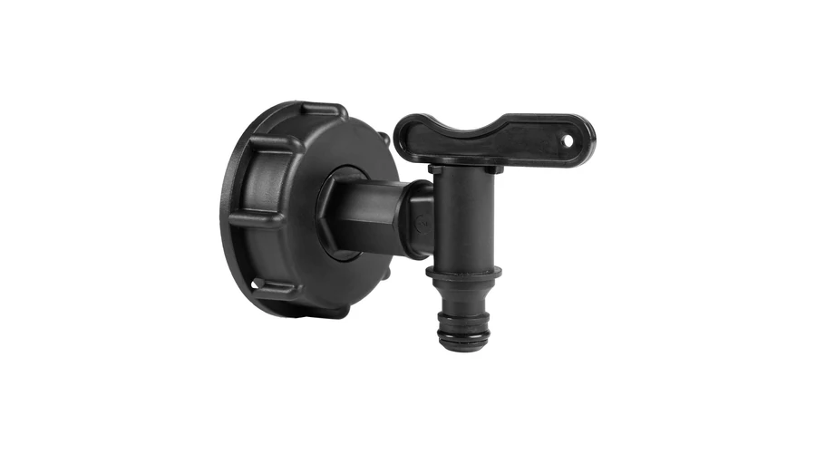 - kiváló minőségű csatlakozás golyóscsappal, amelyet esővíztartályokra, hordókra, kannákra szerelnek fel.