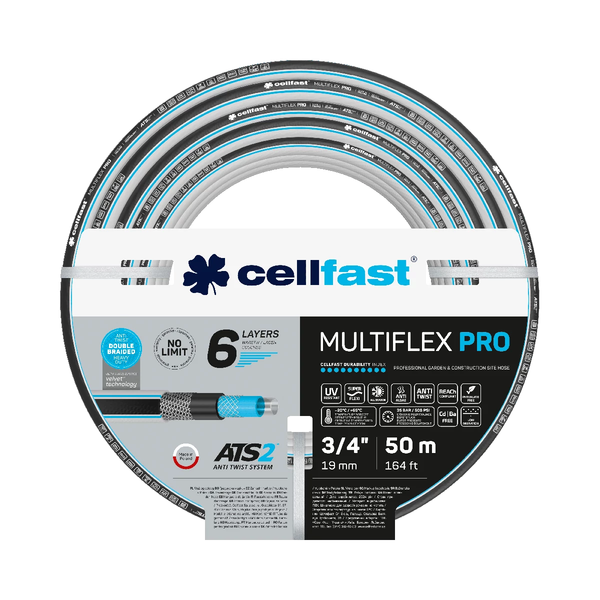 CELLFAST Locsolótömlő 6 rétegű MULTIFLEX ATSV 3/4" 50 m