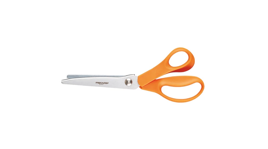 Szőtt textiliák tisztázására és egyéb anyagok díszítő vágására használható olló. Vágás közben a hosszabb alsó penge megtartja az anyagot.