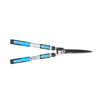 kétkezes sövényvágó olló bokrok, kisebb fák és sövények vágásához az alkalmazott fogaskerék növeli a vágási erőt a csúszásmentes SAFETOUCH felület biztonságos fogást és kényelmes használatot biztosít könnyű, tartós alumíniumból készült fogantyúk 20 cm hosszúságú, tapadásmentes felülettel borított penge a teleszkópos opció lehetővé teszi a nyél egyszerű és gyors meghosszabbítását további 18 cm-rel |