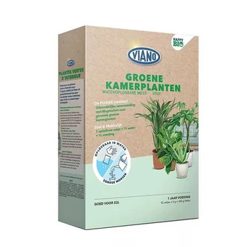 HAPPY BIO LEVÉL-DÍSZNÖVÉNYTÁP 10-3-4 +2MgO Viano HAPPY BIO, vízben 100%-ban oldódó szerves trágya, mely beltéri levéldísznövények tápanyag ellátásához készült. A magas nitrogéntartalom garantálja az optimális zöldtömeg növekedést. A magnézium jelenléte a levéldísznövényeknek sötét zöld színt biztosít. Viano HAPPY BIO vízben oldódó szerves trágya ajánlott a levéldísznövények átültetéséhez, konténerezéséhez. A dobozban 52db 50g-os tasak található, mely egy évi adag. Egyszeri tápanyag utánpótláshoz elegendő: egy tasak tartalmát 1L kézmeleg hőmérsékletű vízben feloldani, majd a növények talaját beöntözni. |