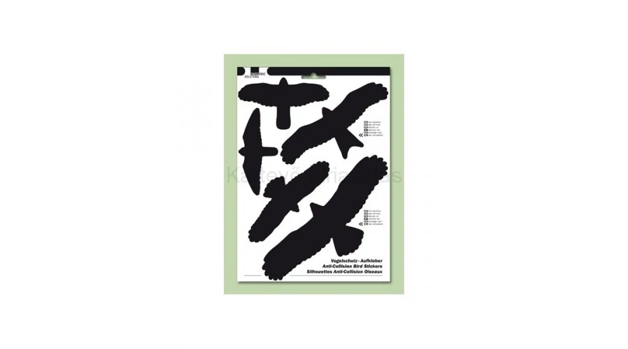 Ablakra ragasztható matrica, repülő ragadozó madarakat ábrázol. Felhasználási területek:
