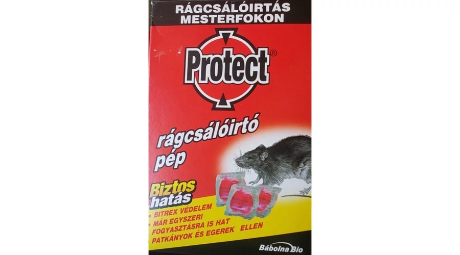 A PROTECT® rágcsálóirtó pép egy olyan új összetételű termék, amely a patkányok és egerek által rendkívül kedvelt ízénél és korszerű bromadiolon véralvadásgátló hatóanyagánál fogva lehetővé teszi az óvatos kártevők gyors és biztos kiirtását. A bromadiolon késleltetett hatása miatt a rágcsálók nem gyanakodnak, így a patkányok és egerek könnyen elpusztíthatók. Alkalmazása különösen olyan helyeken ajánlott, ahol a rágcsálók egyébként is sok táplálékot találnak. A rágcsálóirtó pép egy rendkívül keserű anyagot, Bitrex-et tartalmaz, amely segít megelőzni, hogy az emberek és a haszonállatok véletlenszerűen fogyasszanak a termékből.