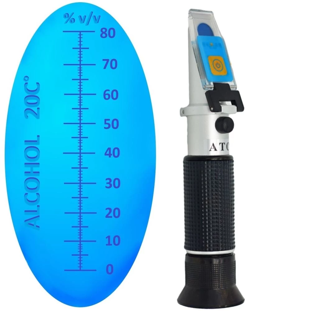 Alkohol szesz fokoló 0 - 80 % ig vv atc kézi refraktometer műszer.