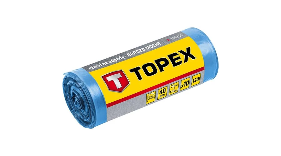 TOPEX SZEMETESZSÁK 120 L, KÉK, 10 DB, NAGYON ERŐS, MÉRETEK:70X110 CM, VASTAGSÁG: 40 MIC, LDPE FÓLIA