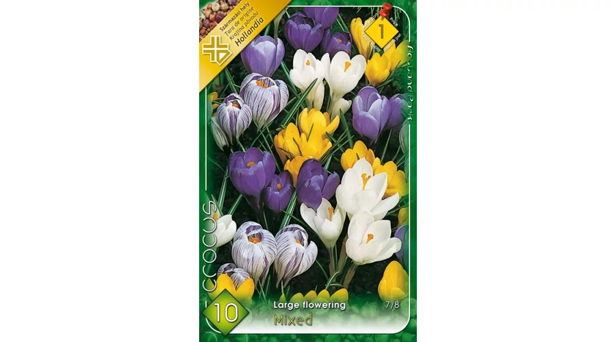 Fűszerű, fehér középerű levelei a korai krókuszokénál szélesebbek (5-8 mm), virágzáskor már jól fejlettek. Virágai nagyok, később nyílók. Az alapfaj színe liláskék, egyszínű vagy csíkozott, de előfordul tiszta fehér is. Mai számtalan fajtája ugyanezekben a színekben és színkombinációkban ismert.